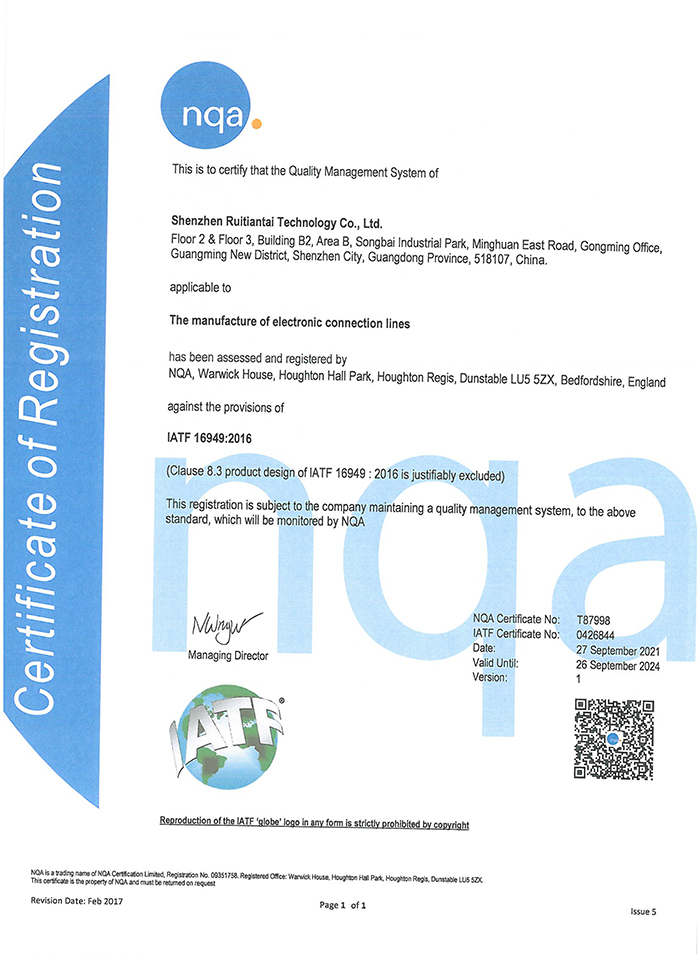 深圳瑞天泰IATF16949证书